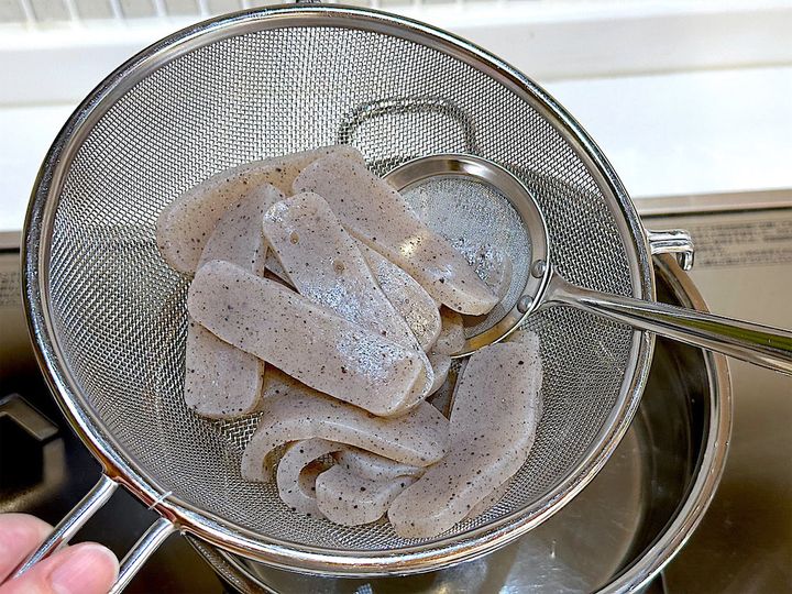 水から茹でると、こんにゃく特有の臭みが抑えられますよ。