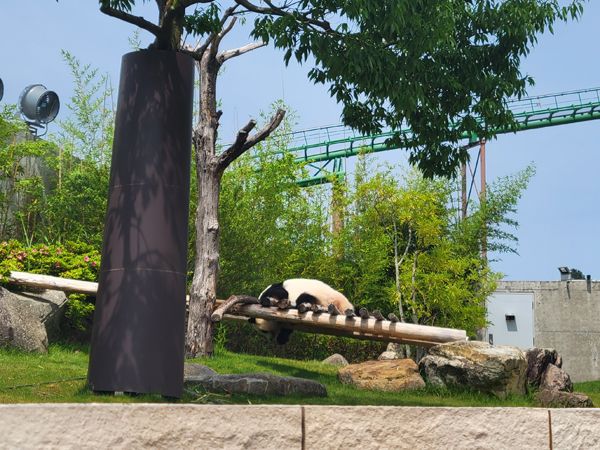 今回は、5月の後半、最後に4頭に会いにアドベンチャーワールドに行った際の様子をレポートします。この日は数日後には検疫期間に入り室内展示になるため、外に出ている姿をギリギリ見られるラッキーなタイミングでした。
