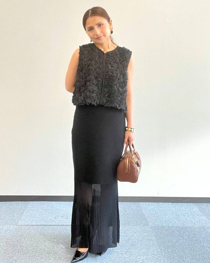 シアーとチュールでオールブラックもドレッシーに纏まり、オケージョンシーンにもマッチします!