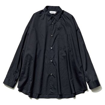 白シャツよりも重厚感があるぶん、知的さをともなったモードな表情に。 黒シャツ(メンズ)/Graphpaper(グラフペーパー 東京)