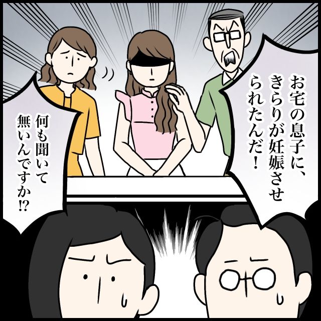 「お宅の息子に、きらりが妊娠させられたんだ!何も聞いてないんですか!?」と大きな声で怒鳴るきらりパパ。そう言われて私たちは驚きました。