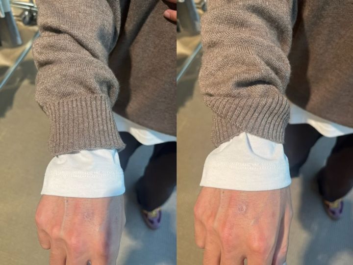 清水さんが披露してくれた袖口のテクニックは意外と簡単で、袖の一部をラフに折り返すだけ。コレならマネできそう!