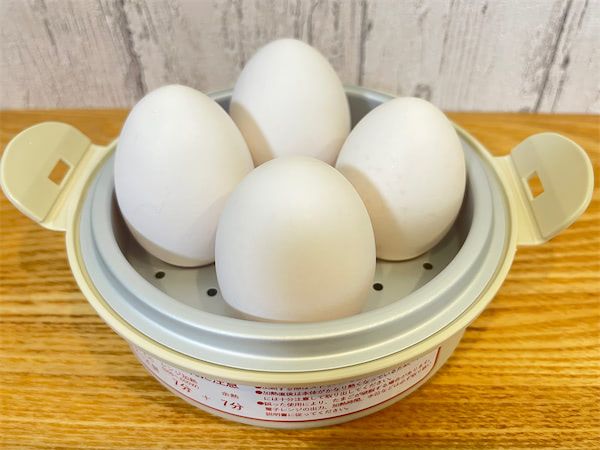 本体容器に水を入れて卵をセットし、電子レンジのボタンを押しただけ。