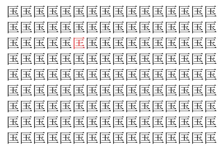 【脳トレ】「匤」の中に紛れて1つ違う文字がある!?あなたは何秒で探し出せるかな??【違う文字を探せ!】