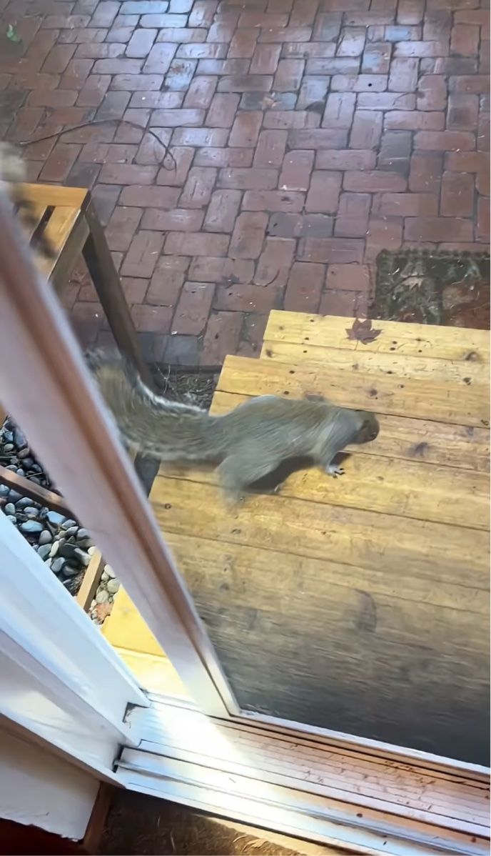 撮影者さんが窓を開けるのを待っている様子のリス。
