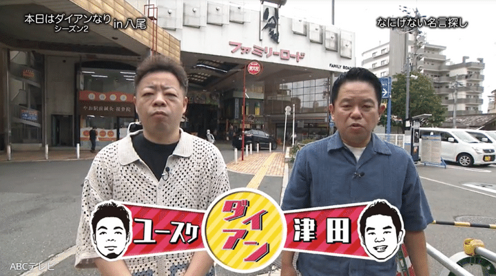 5日(金)の「本日はダイアンなり!シーズン2」は八尾の商店街・ファミリーロードから。
