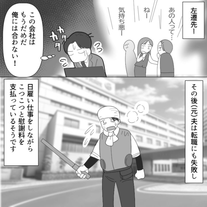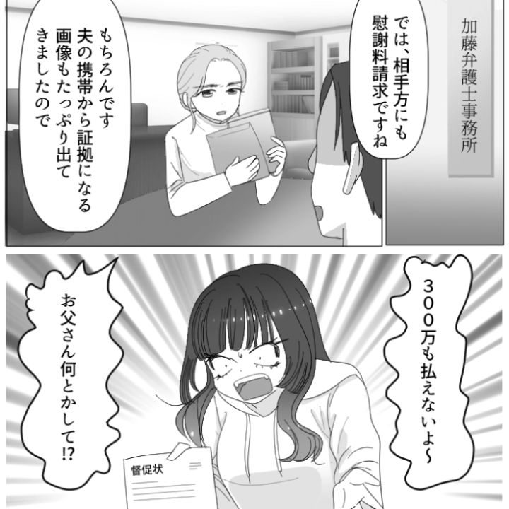 夫の不倫旅行先は主人公が生まれた場所だったというまさかの詰めの甘さ。自業自得の結末を迎えた2人は慰謝料に追われることとなりました。