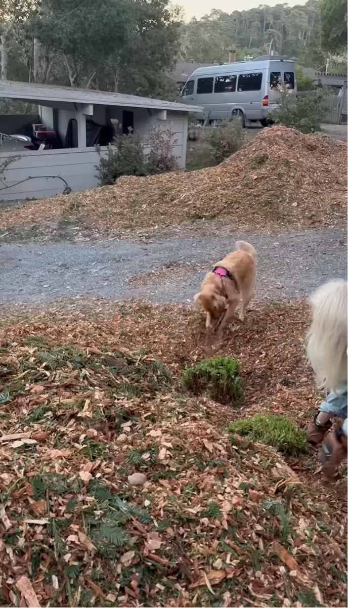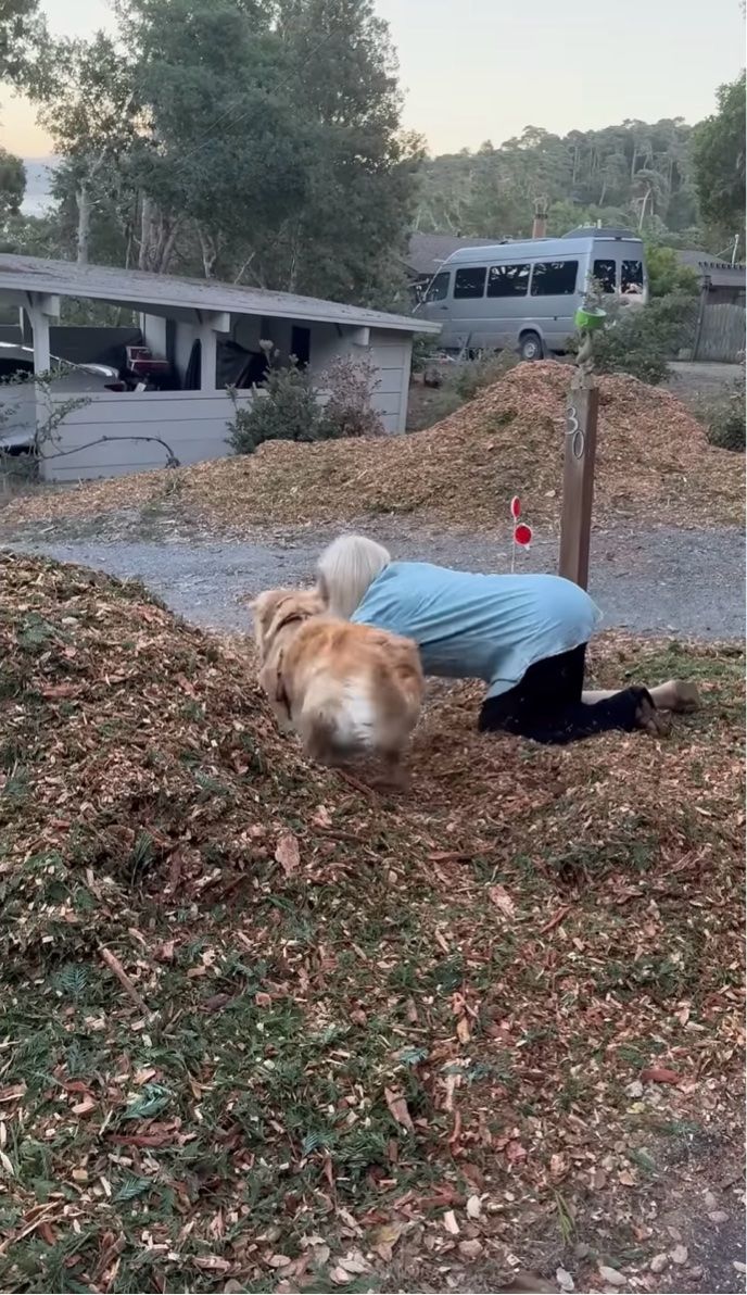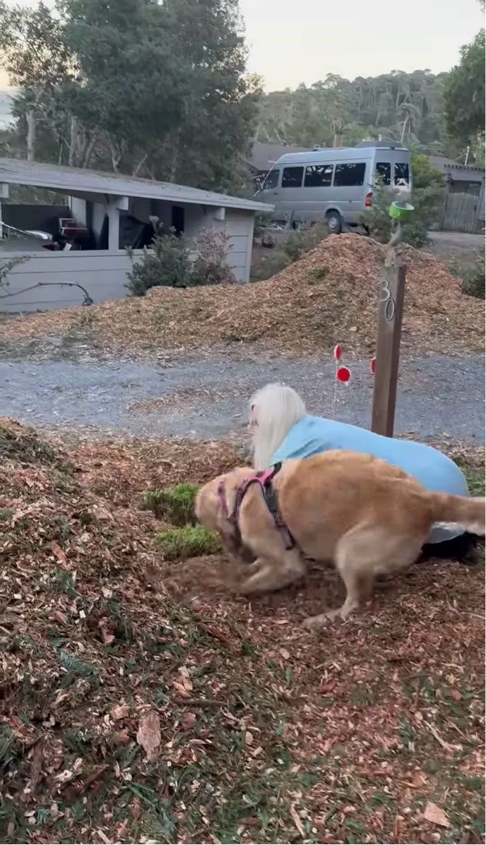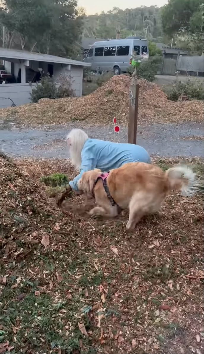 ゴールデンレトリバーのセイラーは、飼い主さんの隣で穴掘りに夢中!