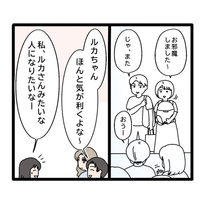 それなのに、ルカさんが帰ってからも「ルカちゃんホント気が利くよな~」「私、ルカさんみたいな人になりたいなー」と夫のアサヒも娘のサクラもまだルカさんの話。