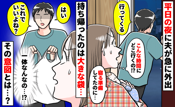 3. 平日の夜に夫が急に外出「寝る準備してたのに…なんで?」持ち帰ったのは大きな袋…衝撃的な夫の意図とは