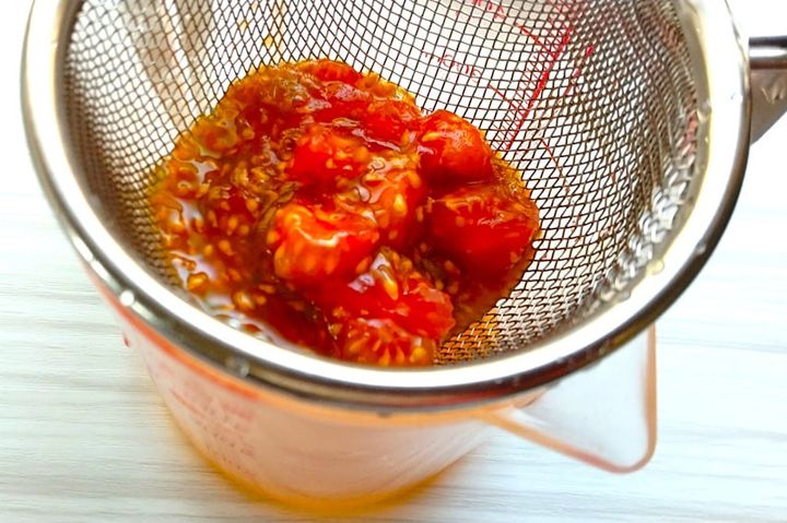 農家さんによると、ミニトマトの中身はザルなどで種を濾すとなめらかに仕上がるそうです。