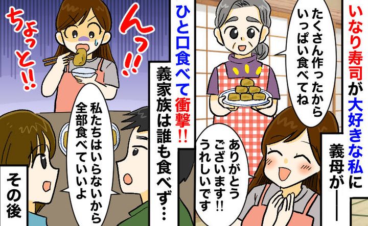 私は必死に「おいしいです」と嘘をつきましたが、いなり寿司が酸っぱいなんて衝撃的な経験でした……。それ以来、義実家では“いなり寿司好き”を公言しなくなりました。