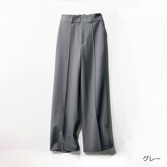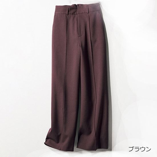 ②ハリ素材&ハイウエストで最強の「美脚ワイドストレートパンツ」