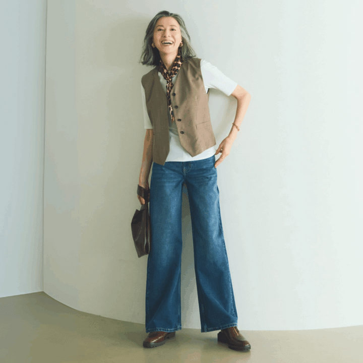 【60代デニム】みんな美脚になれる!60代にぴったりの王道「ワイドストレート」デニムパンツ3選