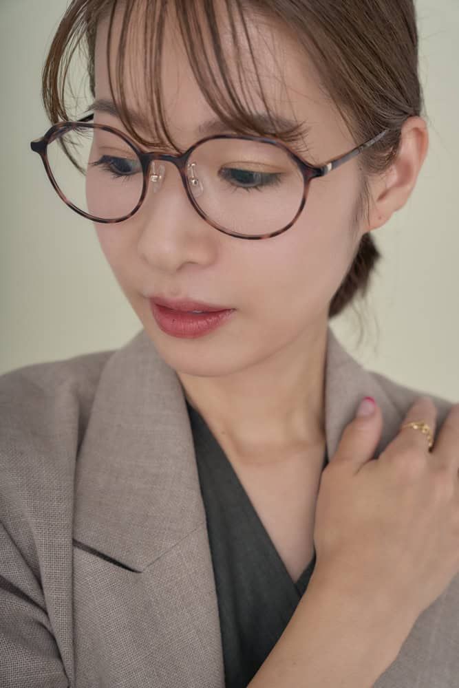 【たまご型×甘エレガント】能美が選んだのは〈べっ甲×チタンのコンビフレーム〉!