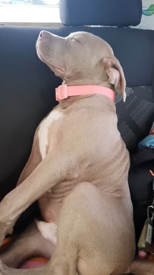 車の後部座席で仲良く眠るふたりの姿は、平和でとってもかわいらしいですね。 この子犬は自分を人間だと思い込んでいるのでしょうか、お姉ちゃんと同じ体勢でスヤスヤと眠っています。