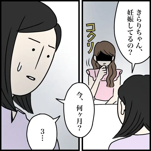 きらりちゃんパパにそう言われて、「きらりちゃん、妊娠してるの?」とたずねると、コクリとうなずくきらりちゃん。「今、何か月?」と聞くと、「3・・」と言葉を濁しました。