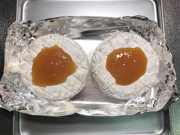 1. アルミホイルにチーズを乗せ上から蜂蜜をかけ、グリルかオーブントースターでトロトロになるくらいに中火で焼きます。