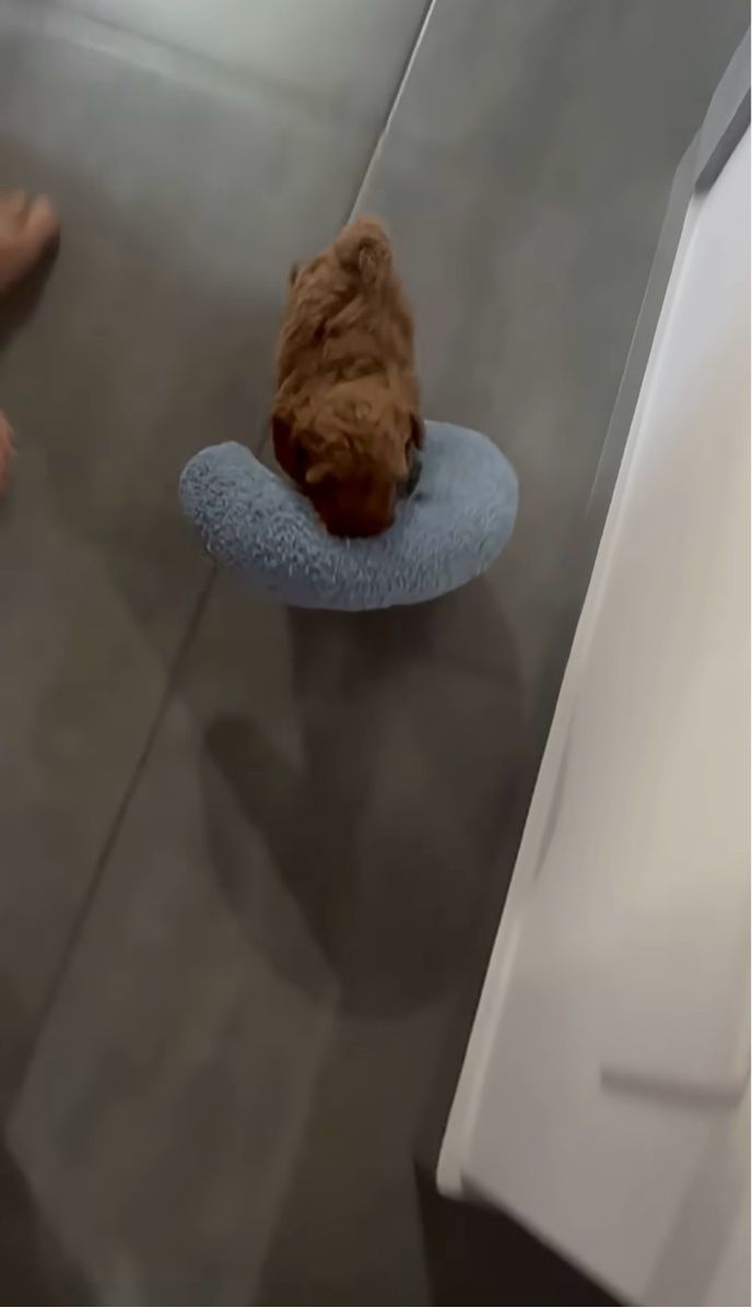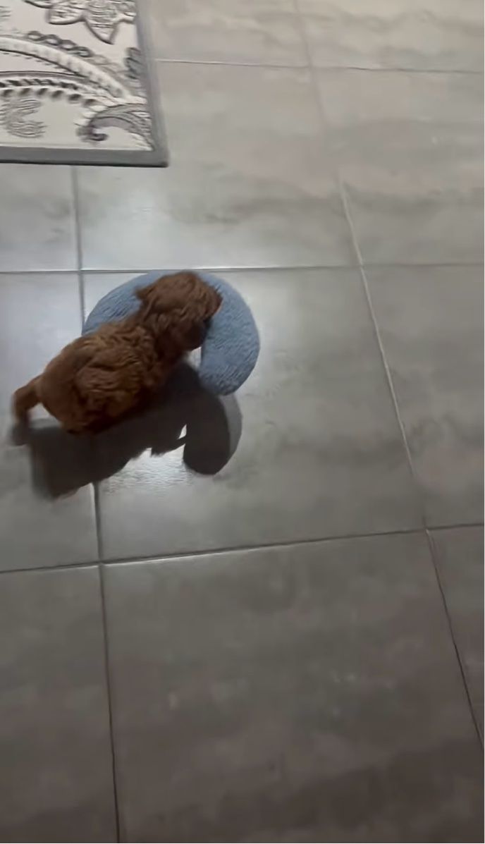 3. お気に入りの枕をくわえてトコトコ。子犬のかわいすぎるナイトルーティン【海外・動画】