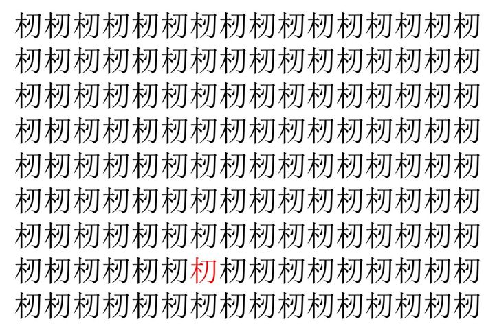 【脳トレ】「杒」の中に紛れて1つ違う文字がある!?あなたは何秒で探し出せるかな??【違う文字を探せ!】