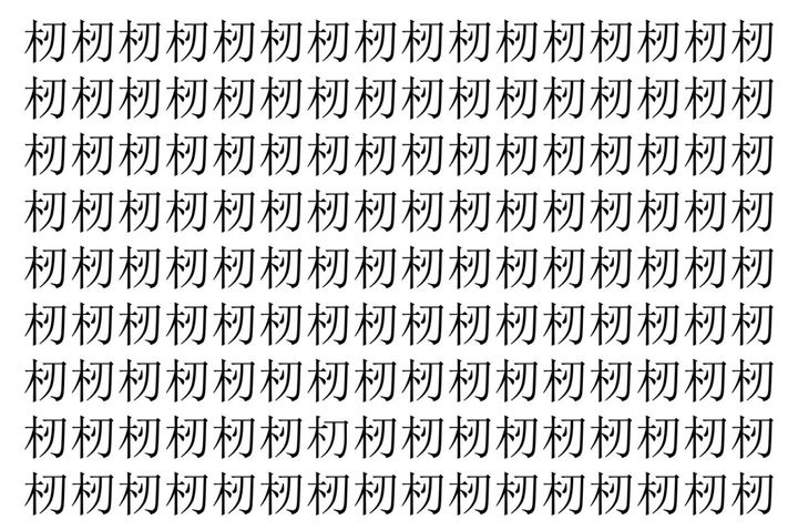 画像に並んだたくさんの「杒」という漢字。 その数144個なのですが・・・、実はその中に1つ違う漢字が紛れ込んでいます!!