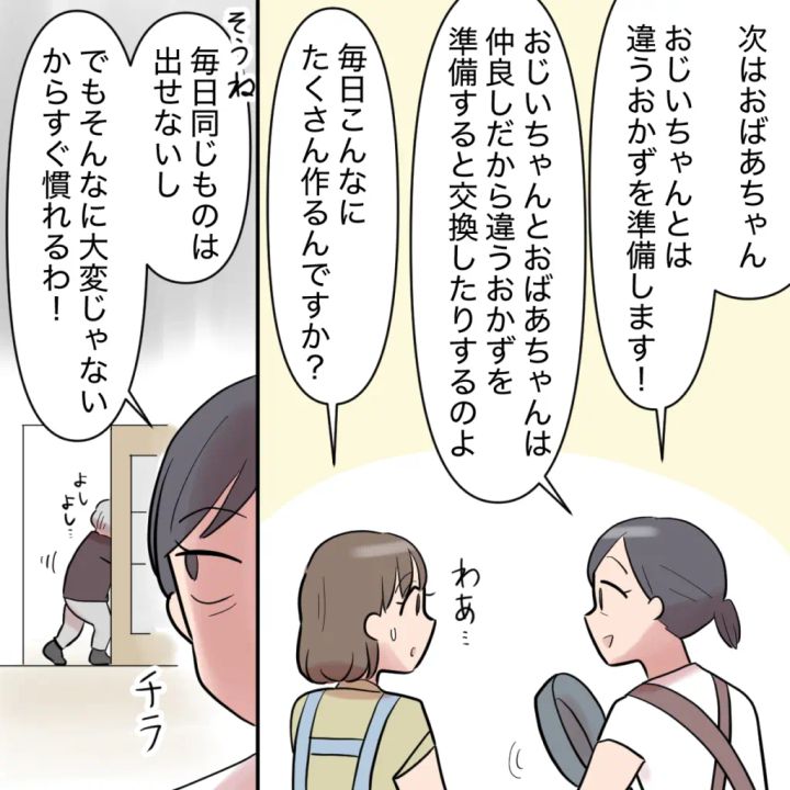 「そんなに大変じゃないからすぐ慣れるわ」と答えつつ、台所の外で2人の様子を見ていた義祖母が居間へ戻って言ったのを義母は見逃しませんでした。