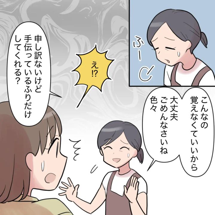 そして、「申し訳ないけど手伝っているふりだけしてくれる?」と言ったのでビックリ。