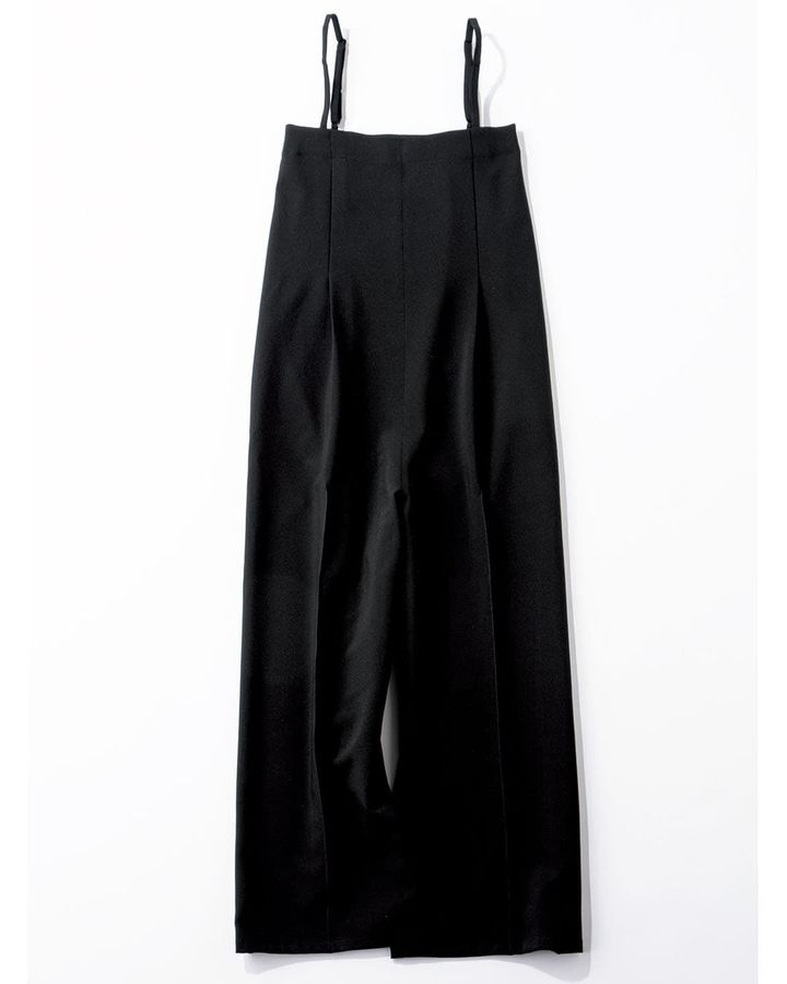 華奢なストラップとチューブトップのデザインで上半身は女性らしく、ボトムスはワイドでハンサムな印象のオールインワン。インナーにシャツを合わせればきちんとシーンにも対応できる着回し力が魅力!
