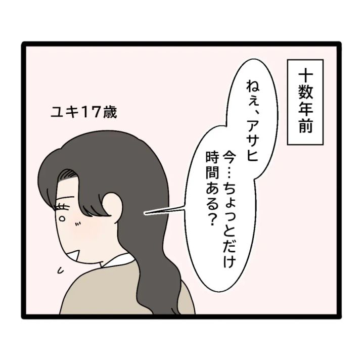 そのときアサヒはもう二十歳で社会人でした。「ん?ユキどうした?珍しいな」かしこまった様子の私を不思議がるアサヒに「話したい事があるの」と切り出しました。