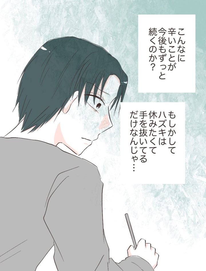「こんなに辛いことが今後もずっと続くのか?もしかしてハズキは休みたくて手を抜いてるだけなんじゃ・・?」と疑い出すリヒトさん。