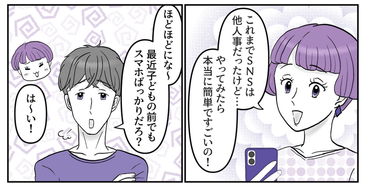 <SNS依存、ヒヤッ…>日常生活を投稿「いいね」夢中な私!新たなママ友との出会い【まんが】