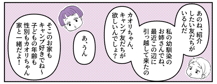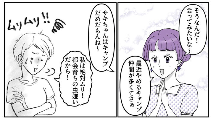 私はSNSを見るのはもちろん、画像や動画を投稿するのが趣味になっています。子育てや日常の喜びをSNSで記録し、「いいね」される日々を楽しんでいました。そんなある日ママ友のサキちゃんから、うちと同じくキャンプが趣味だというマリナちゃんを紹介されました。