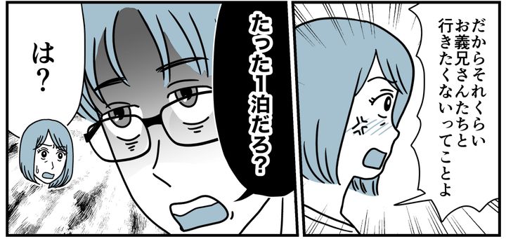 <義兄は俺様モンスター>夫「たった1泊だろ?」夫婦ゲンカ勃発。キャンセル上等ッ!【まんが】