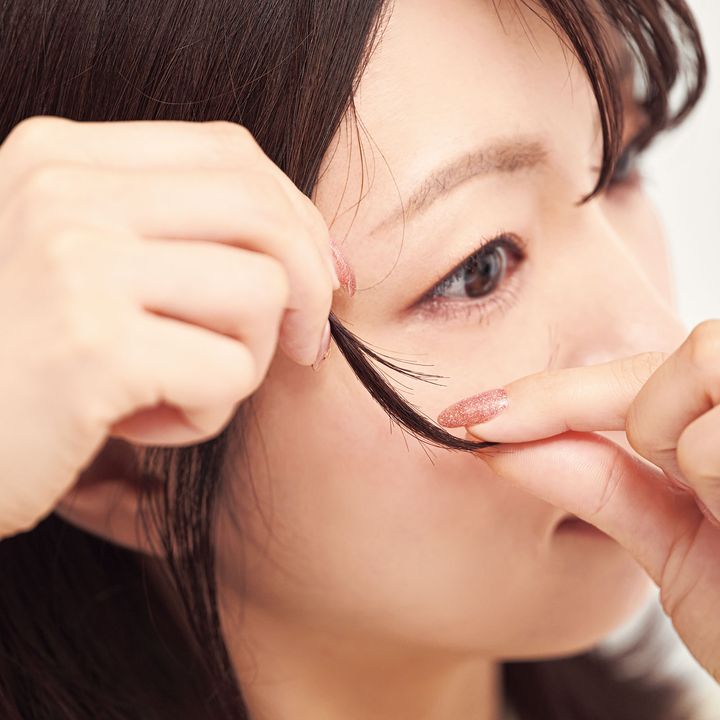 前髪のサイドの髪は頰にかかるように