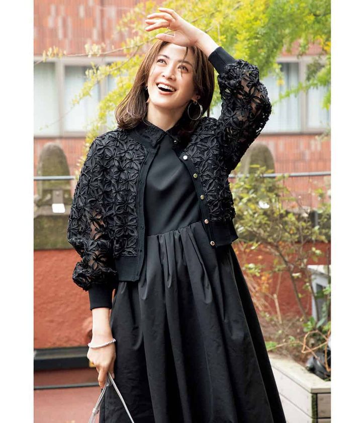 忙しい朝に重宝した、1着で完璧なコーデが完成する半袖のワンピース。一方で、それゆえに着回しにくいのも事実。秋は花柄レースなど存在感のある羽織りで、クラシカルにアレンジしてみては?ワントーンでまとめれば、まるで新しいワンピースのような印象に!