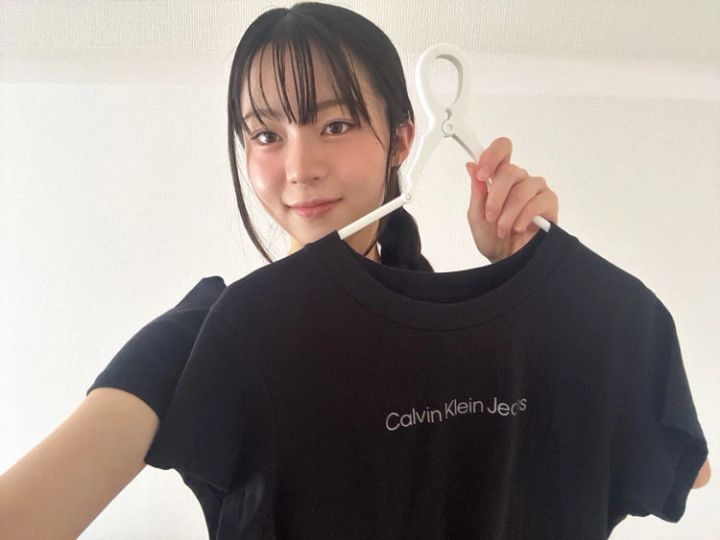 「私の自慢のTシャツは、Calvin Klein Jeans!お腹がチラッと見えるクロップドデザインが可愛いポイントです」