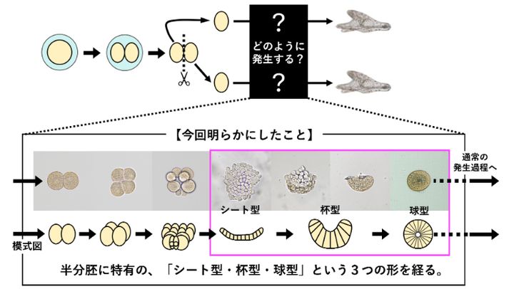 観察の結果、半分にされた胚は通常の完全な胚とは異なる道をたどりました。