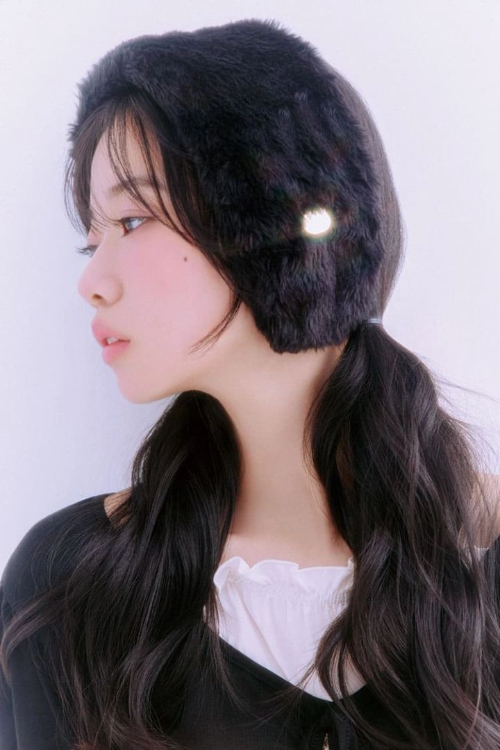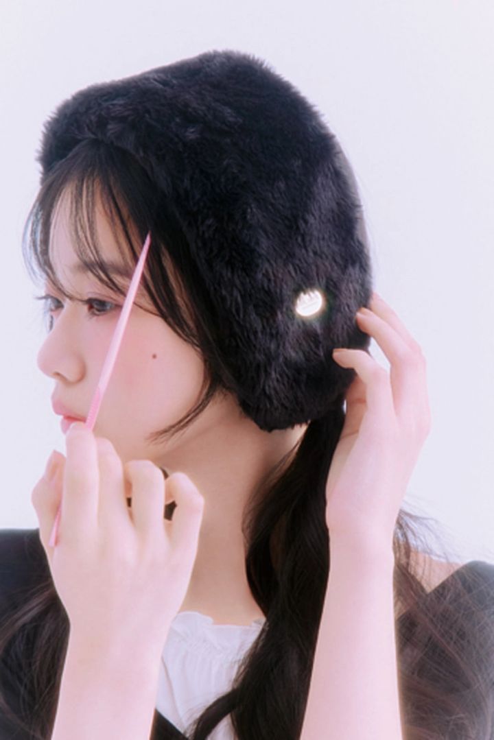 存在感と愛らしさがバツグンのイヤーマフは、黒色を選べば、甘さ加減がいい塩梅に。レトロっぽな2つ結びで、顔まわりをすっきりさせて小顔効果も期待できちゃいます。