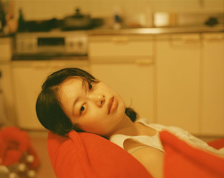 被写体となっている女性たち、アトリエのデスクや窓辺に置かれたオブジェ、移動中に見つけられたものたちが温かなオレンジ色の光に包まれて佇む。