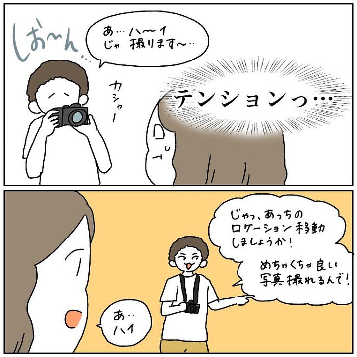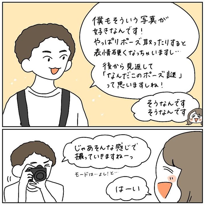 こんにちは!Instagramで日々の暮らしを漫画で紹介している、Web漫画家のmomoです。ハネムーンの記念に、初めてプロのカメラマンさんに撮影をお願いしたわたし達夫婦。期待に胸を膨らませて臨んだ撮影でしたが、想像とは異なる展開に…。一体何が起きたのか!?詳しくはぜひ漫画でお確かめください。