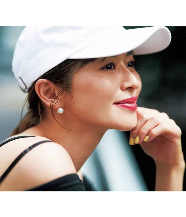 キャップで隠れる目元は引き算。そのぶん口元に色味を