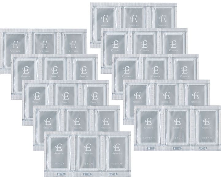 再生医療研究から生まれた信頼感。エテルナムスキンケアお試しサンプル ローション、セラム、クリーム パウチ各5包