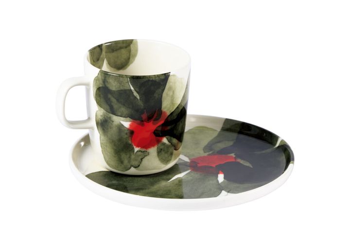 3. 夏の夜をイメージした花が描かれた、〈マリメッコ〉のマグカップ&プレート。