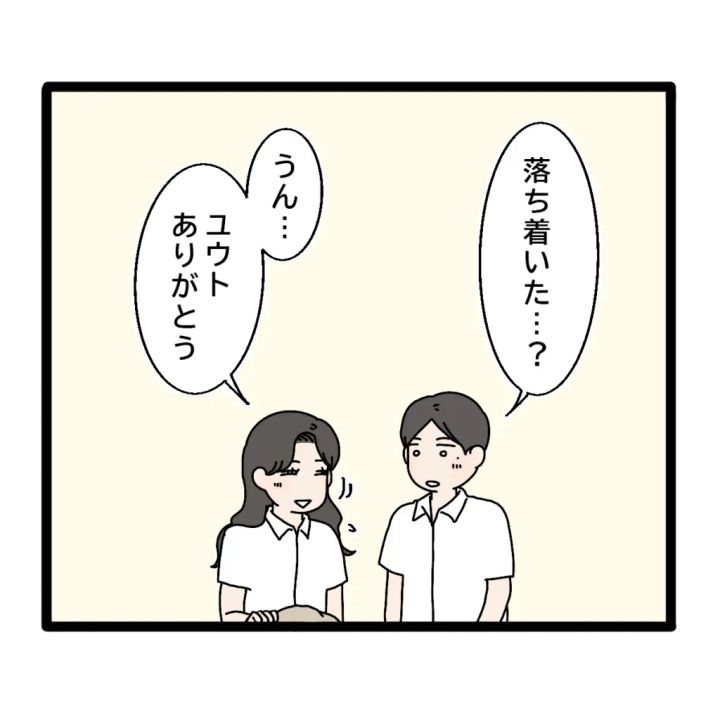 「落ち着いた・・?」と気遣ってくれる優しいユウト。「うん・・ユウトありがとう」この日、私はユウトの優しさにとても救われました。