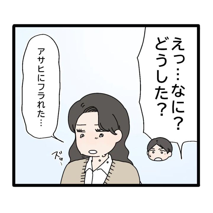 ユウトは私が泣いていることに気が付くと「えっ・・なに?どうした?」とビックリ。私は「アサヒにフラれた・・」と打ち明けました。思い出すとまた涙が溢れてきました。