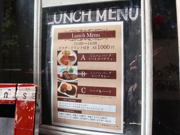ランチが終わる14時前に訪問したところ、店内はびっしりとほぼ満席!ランチセットは3種類のうち2種類が売り切れていて、唯一あった「A ミニハンバーグ ミートスパゲッティ」とコーヒーを注文。