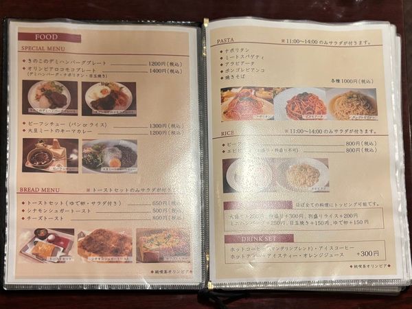 そのほかトースト、パスタ、スイーツ、ドリンクなどメニューはたっぷり。可愛らしいクリームソーダやプリンなど純喫茶好きの心をくすぐります。