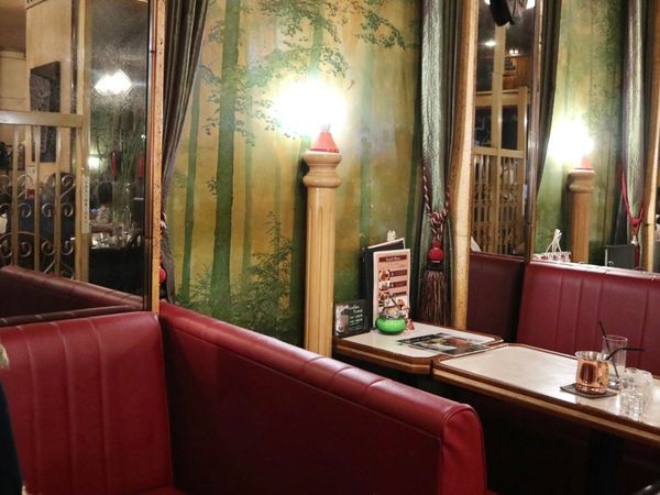 店内はゴージャスなシャンデリアやステンドグラス柄のライトが見守る幻想的な空間!赤いソファタイプのお席が広がり、約50名が寛ぐことができます。
