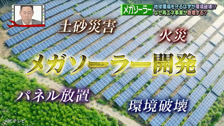 奈良県では、メガソーラーの造成地で2度にわたって盛土による土砂崩れが発生したり、福島県では、山の中腹に設置されたメガソーラーが反射して「光害」が住民を悩ませたていたり。