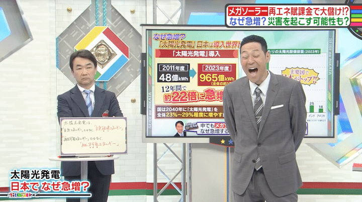 これについて、経済学者の髙橋洋一氏は、「2012年にFIT(固定価格買取制度)が始まって、翌年の2013年に我が家も屋根にソーラーパネルをつけました。はっきりいって、すごい儲かりましたよ。この政策を批判しつつね、自分ではやっちゃった。自分の立場に立ったら、やっちゃうよね」と暴露し、スタジオは爆笑の渦に。